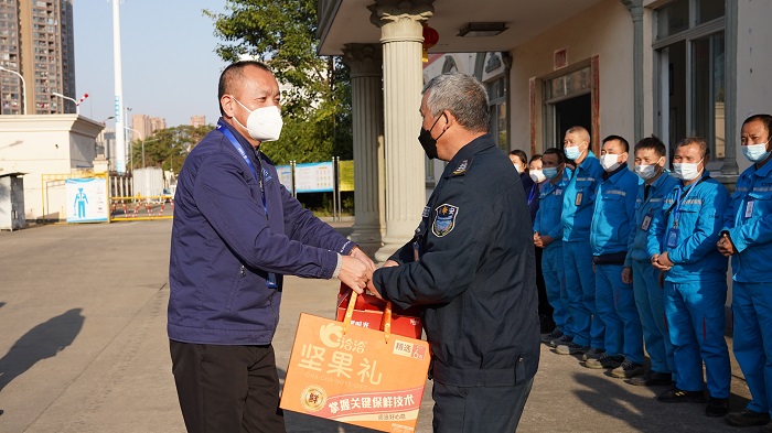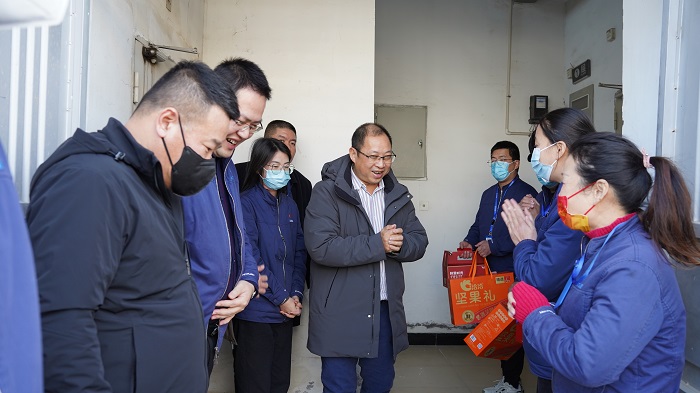 “新年好!新年好!”每到一处都和大家亲切交谈,详细询问了大家的工作生活等情况,并送上了新春慰问品。
