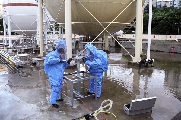 本次演练项目为: LPG1#储罐底部出液管第一道法兰垫片老化造成液化气泄漏事故的应急处置。主要流程为:模拟事故发生、报警、应急启动、人员疏散、安全警戒、消防喷淋驱散燃气稀释浓度、抢险堵漏及最终解除警戒等。在演练总指挥叶春总经理的指挥下,所有参演人员严肃认真、有条不紊地推进各个步骤,历时一个小时后,演练圆满完成。