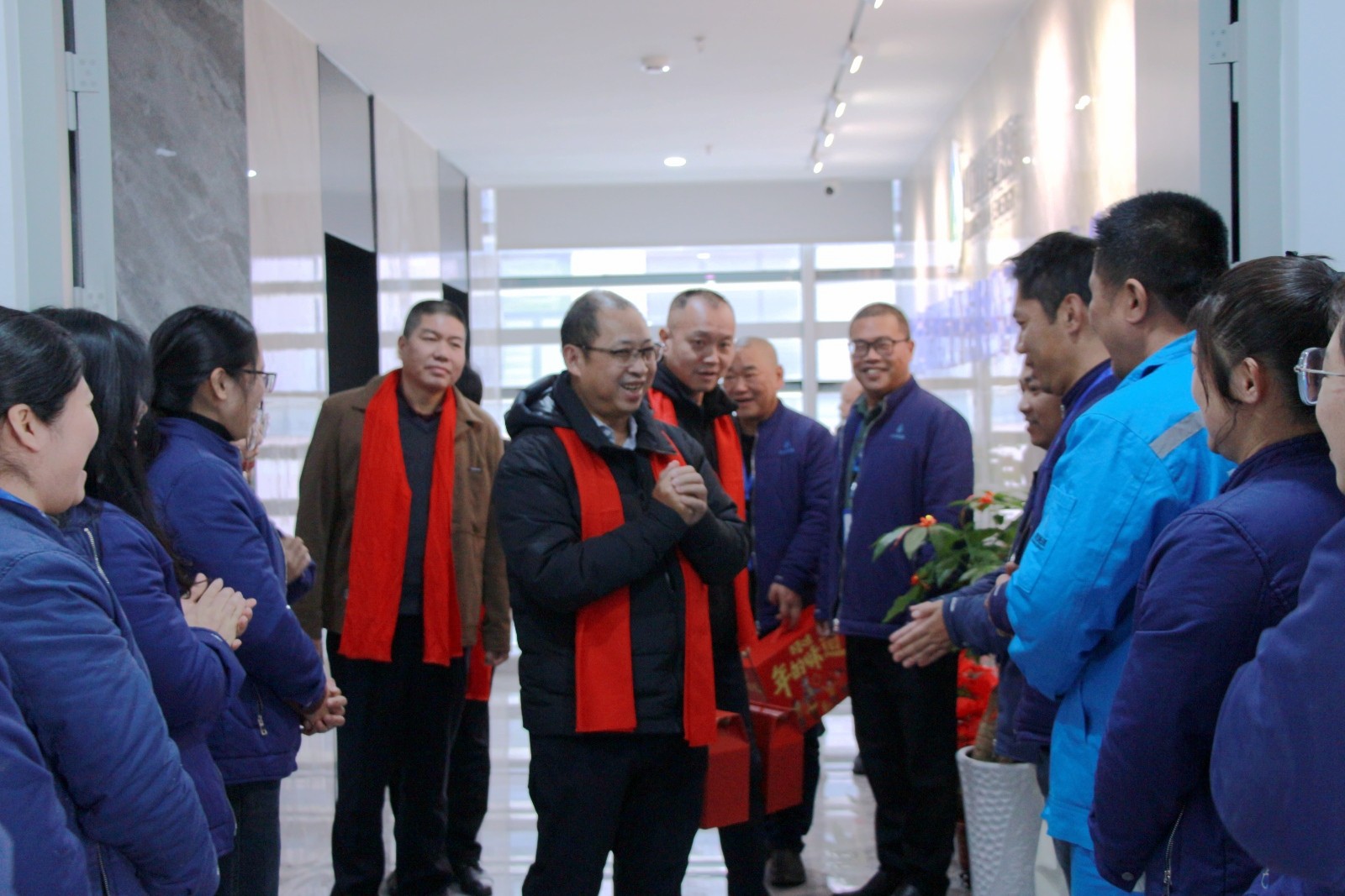 “过年好,给大家拜年了!”“祝大家身体健康,工作顺利!”每到一处,高管团队们便为大家送上新春祝福。“过年回家了吗?”同时,领导们询问起大家过年情况和生活状况,亲切地与大家唠起家常。