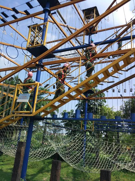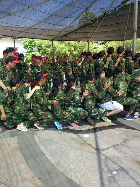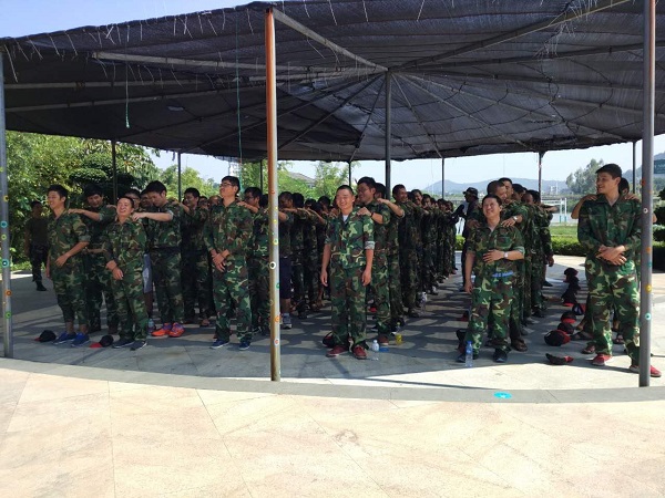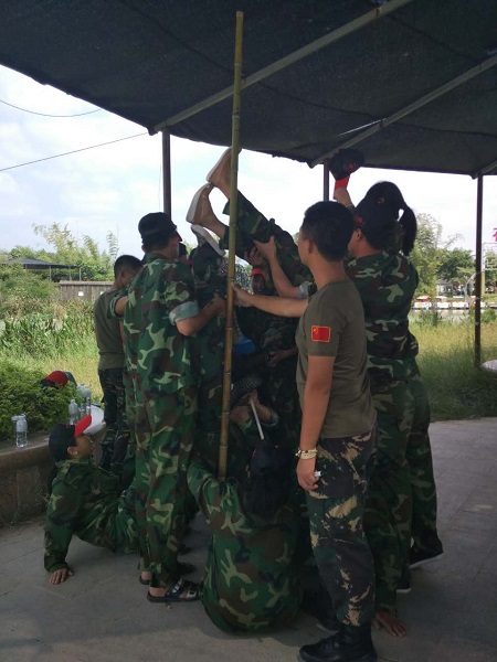 活动开展前,教官将所有人员打乱分成8组,让每队选出队长,发挥各队的聪明才智创建队名与口号,随后进行了各队的团队展示,形式多样的团队展示带来惊喜连连,展现出了队员们的自信、活力与激情。紧接着,在教练的指导下,以团队形式在叠脚比高、坐地起身、支援前线、解手链等游戏上进行了比拼。其中“叠脚比高”游戏使队员们强烈感受到团队协作的重要性,原以为不可能达到的高度,在集体的努力下,竟然完成了,事实告诉我们,只要大家一起努力,发挥各自的作用,团队便能取得胜利,困难都能迎刃而解;而紧张刺激的“支援前线”在消耗队员们大量体力的同时,也彻底点燃了大家的热情;随着各个活动的进行,逐渐展露队员们的自信与团结。