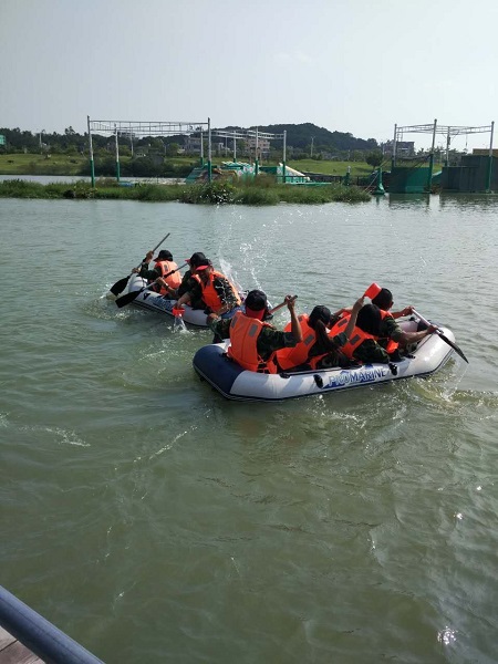 下午,在教官的组织下,队员们体验了心智高空挑战以及水上皮艇水战、铁索桥、滚木、水上漂、水上吊桥、平衡桥、吊环飞渡等多种水上运动。随着各项活动的比拼,队员们增强了自信心,充分发挥了自己的想象力与创造力,在很大程度上克服了心理惰性,磨练了战胜困难的毅力!