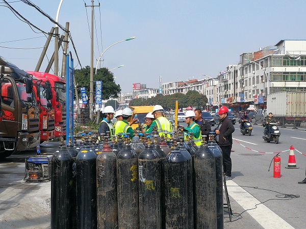 在面临施工会直接影响到涵江区域天然气供应的情况下,公司启动了天然气供应管理应急预案。经过与海油福建站线和新能源公司的沟通协调,调动了公司应急气化装置,于涵西站内进行LNG气化保供,同时对洞湖口路段受影响的工业用户协丰模具启动了LPG瓶组供应方案。