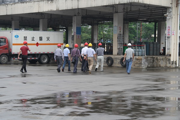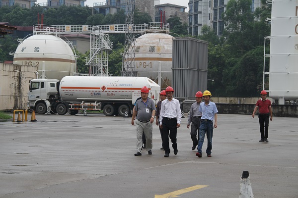 王明炫副厅长等领导一行首先来到旷远能源气源厂,详细了解液化石油气钢瓶的充装、运输等一系列作业流程,现场询问关于推行瓶装液化石油气销售实名制的落实情况,并对实名制登记相关资料进行了检查,。