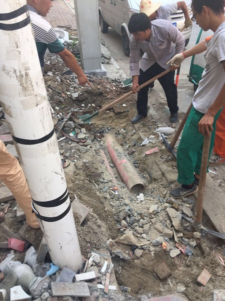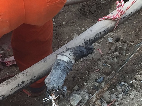 2017715日上午839,旷远能源管网部巡线员谢海阳在对华林工业园区支四路巡线过程中,发现空气中弥漫着一股臭味,多年从业经验使他立刻引起警觉,通过手持式可燃气体检漏仪确定了该区段存在燃气泄漏。他立即对现场进行警戒,并及时上报管网部经理林元琦。林元琦考虑事故隐患重大,影响范围广,立即上报公司领导并启动应急预案。旷远能源客服部、调度监控中心、工程管理中心、宏盛市政工程有限公司等多方迅速联动。管网部经理林元琦第一时间组织力量赶赴现场处理,他凭借多年的管网应急处理经验,迅速锁定漏气区段,通过取点检测分析,准确地找出了管线漏点。顶着烈日冒着酷暑,为了及时恢复供气,旷远能源管网部和宏盛市政的应急抢修人员争分夺秒进行抢修。当天下午1718分,更换管段焊接完毕;1758分,冷却侧漏后恢复供气。
