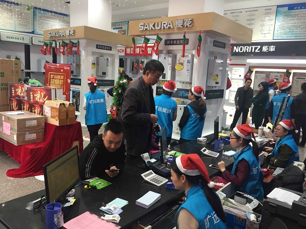 为持续性开展旷远能源燃气具销售宣传工作,以回馈广大燃气用户,2017年12月23日,旷远能源客服部在旷远营业厅举办了“双蛋大狂欢,年底无底线”团购会活动,现场共吸引百余名业主前来参加选购。