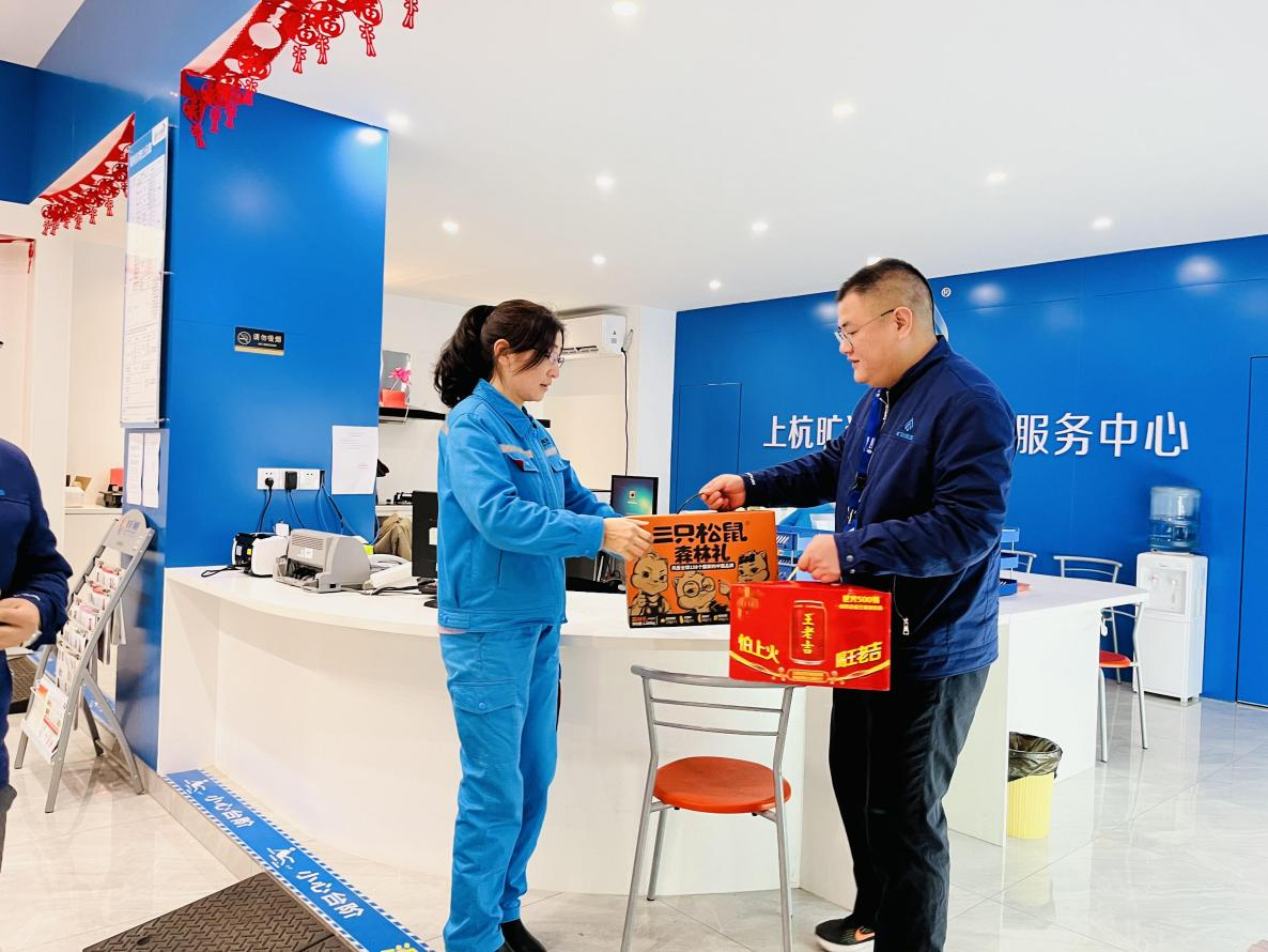 2022年2月7日,正月初七,带着新春的温暖和问候,上午10时许,上杭旷远能源总经理李吉刚、副总经理李军代表总经办来到上杭旷远能源营业厅、储配站为员工送上新春祝福及开工礼品。寒冬虽冷,人心却暖,总经办代表上杭旷远能源感谢每位员工在过去一年的辛勤付出和努力奉献,通过“面对面”的接触,“心与心”的交流,由总经理指导工作,完善细节,激励大家在新的一年万象更新,展望未来,业绩蒸蒸日上。(上杭旷远-孔天英)..