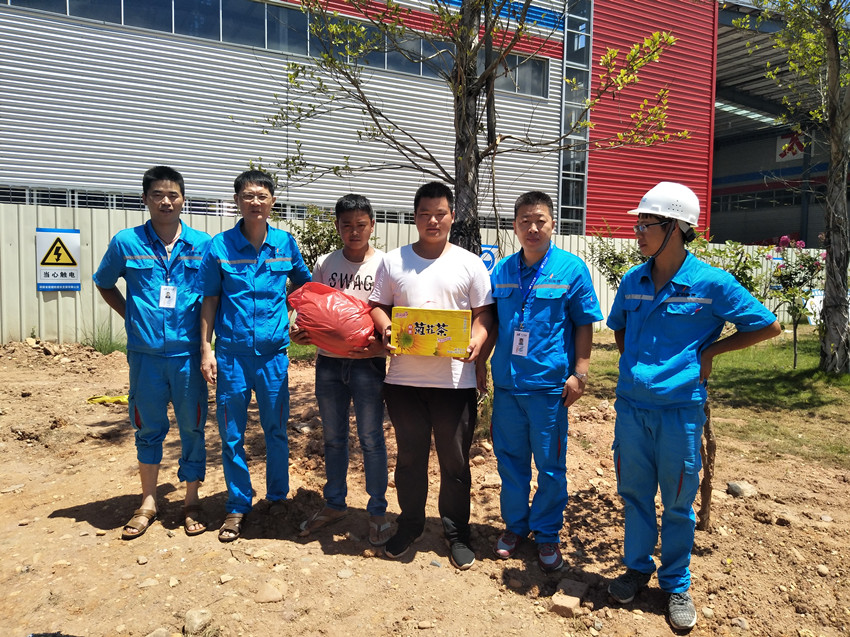 7月18日,上杭旷远能源有限公司总经理姚力争、副总经理郭明亮、工程部副经理李宁森一行对宏盛市政上杭项目部施工班组人员进行实地高温慰问工作,上杭旷远能源有限公司坚持以人为本,抓好生产运行的同时,高度重视员工劳动保护工作。在盛夏高温季节,公司领导深入基层班组和施工现场,送防暑降温水果及饮料,慰问冒高温作业的施工班组人员,他们奋战在工程建设的第一线,抢抓施工黄金季,确保各项工程的安全、优质..